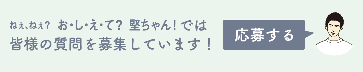 こちらの「ねぇねぇ?お・し・え・て?堅ちゃん!」応募ボタンから応募いただけます。