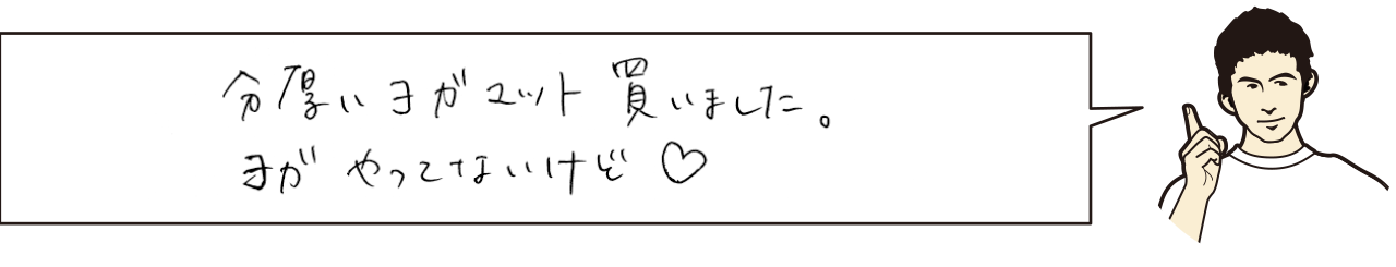 こんにちは。私は健康と聞くと何でも試してみたくなります。今までダイエット、便秘、レシピと色々、やっています。堅ちゃんは何か健康のために続けていることありますか? |