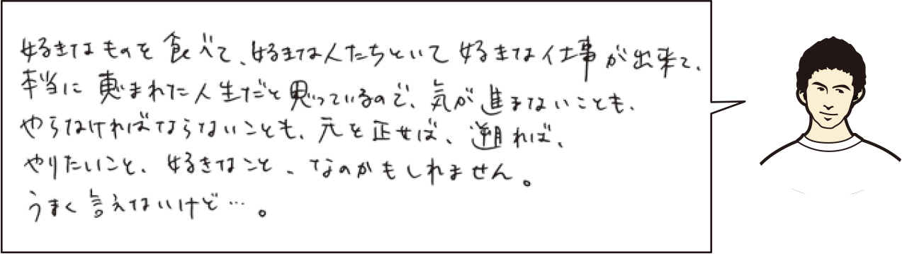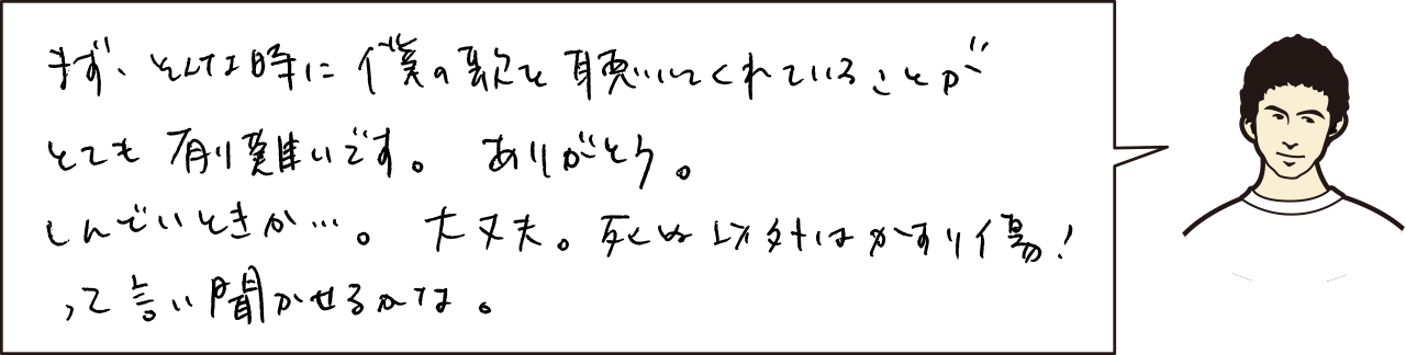 今でも歯を食いしばらなきゃ出来ない事があって、しんどいなって思います。そんな時堅ちゃんの歌で乗り越えますが、堅ちゃんはどうして乗り越えますか? |
