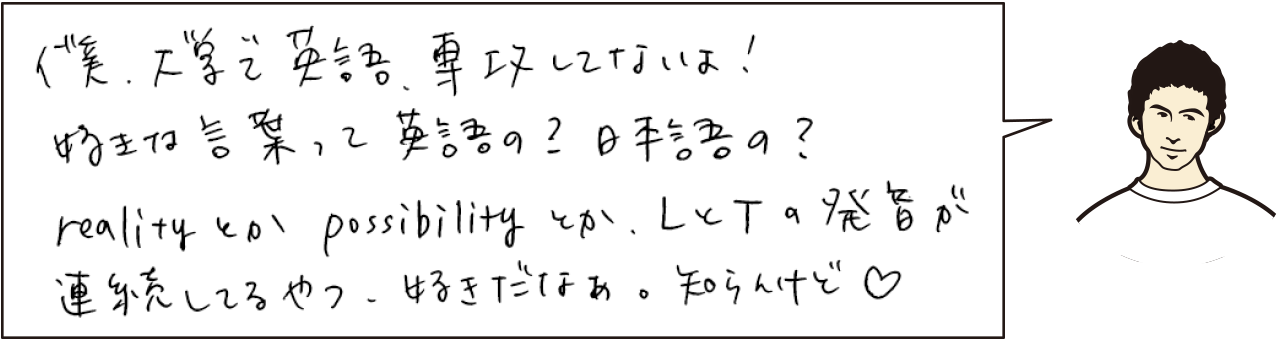 堅ちゃん、いつもありがとう!How can I ever thank you!!私もジャージの紐が入り込み、引出せなかったよー(笑)そして私も、大学で英語を専攻していました。好きな言葉は何ですか? |
