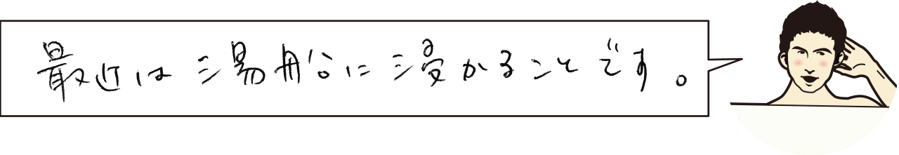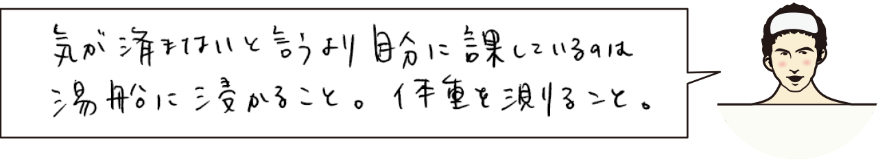 堅ちゃん、こんにちは。堅ちゃんは1日の中でこれはしないと気がすまない!というルーティンはありますか?教えてください。私はどんな猛暑日だとしても、1日の終わりに熱い湯船に浸からないといられません。1日が終わらないのです。シャワーですませると、何か忘れ物をしている気になります。 |