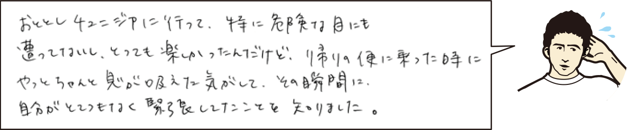 堅ちゃんの海外旅行エピソード大好きマンです(旅行記出してほしいぐらい)!今までたくさんの国に行かれたと思いますが、「これは一番のピンチだった!」ということってありますか? |